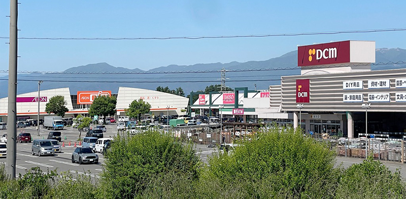100円ショップ、ホームセンターなどがあり、アイシティと並んで山形村の買い物事情を支えます。