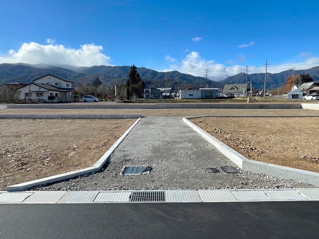 アイシティ21と山形村役場の中間点に誕生する、全18区画の分譲地。南側が開けて明るい立地です。2026年1月末に土地引き渡し予定、建築条件はありません。